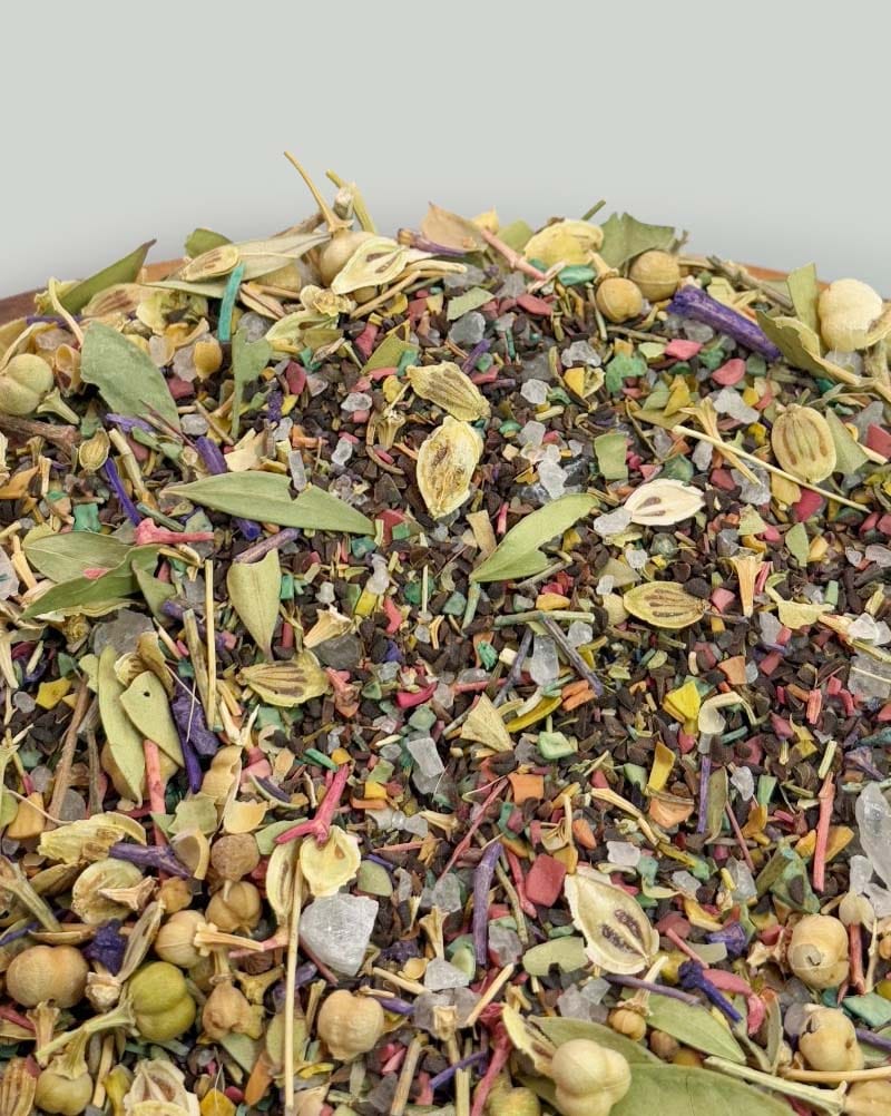 - ترکیب اسپند سیاه مرغوب بههمراه گیاهان خشک معطر و ذرات طبیعی رنگی
